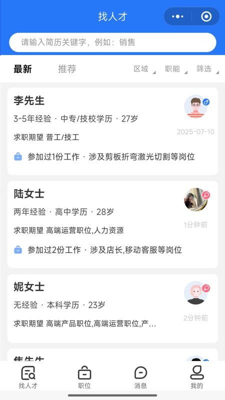 企业端提供人才库管理、面试评价系统、录用流程跟踪等全套招聘工具。数据看板直观展示招聘效果,帮助企业优化招聘策略。