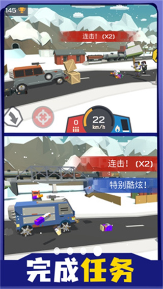 游戏采用渐进式的地图解锁机制,玩家可以逐步探索新区域,挑战不同难度的关卡。每个关卡都设有明确的任务目标,玩家只需完成指定的击杀任务即可获得丰厚奖励。游戏还提供了多种资源收集和强化系统,让玩家能够持续升级卡车的战斗力,轻松应对各种挑战。