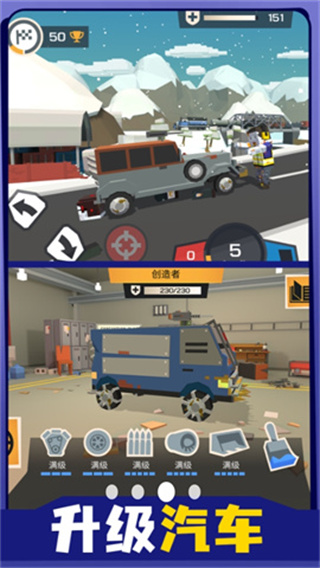 游戏采用简约而不简单的美术风格,通过明快的色彩搭配和多边形设计,营造出轻松休闲的清新氛围。玩家可以体验到爽快刺激的撞击玩法,驾驶各式各样的改装卡车在丧尸群中横冲直撞。随着游戏进程的推进,玩家将面对越来越复杂的关卡设计,需要应对一波又一波不同特性的丧尸潮。