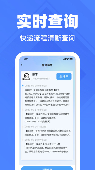 内置智能客服系统整合了18家快递公司的官方服务通道,通过AI预处理80%的常见问题(如改址、催件),复杂问题可直接转人工并显示预估等待时间。会员用户享有专属客服通道和优先处理权益。应用采用轻量化设计,占用内存不足50MB,却实现了OCR识别单号、离线查询记录、省电模式等进阶功能。通过机器学习算法,系统会分析用户的查询习惯,逐步优化界面布局和功能推荐逻辑。