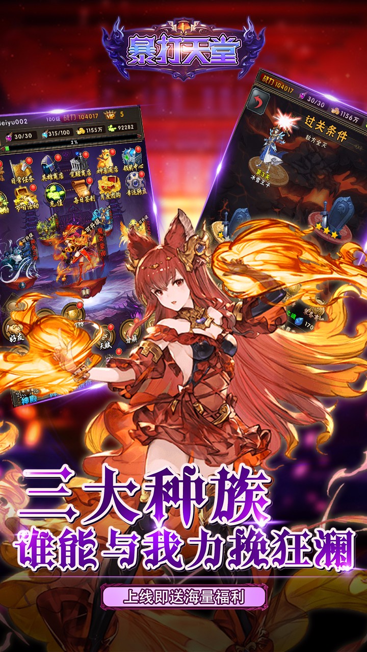 《暴打天堂》是一款融合了神话剧情与即时战斗元素的动作手游,游戏以精美的日系动漫风格打造,角色设计细腻且充满个性。玩家可以从众多风格迥异的战斗英雄中选择心仪角色,搭配多样化的宠物系统,让前期培养的宠物在战斗中持续发光发热。无论是PVE副本还是PVP竞技,游戏都提供了丰富的玩法体验,流畅的技能连招与多人实时对战系统,将为你带来酣畅淋漓的战斗快感。