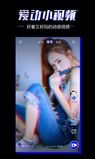 爱动小视频app是一款集短视频创作、社交互动与娱乐分享于一体的创新平台,为用户打造了一个充满活力与创意的数字空间。在这里,每个人都能找到属于自己的舞台,无论是展示才艺、分享生活点滴,还是结识志同道合的朋友,爱动小视频都能满足你的需求。平台汇聚了海量优质短视频内容,涵盖搞笑、创意、舞蹈、美食、旅行等多元领域,让你随时随地发现精彩。独特的社交机制让你轻松与陌生人建立联系,通过点赞、评论、私信等方式展开互动,让每一次相遇都充满惊喜。现在就加入爱动小视频,开启你的短视频社交新体验!