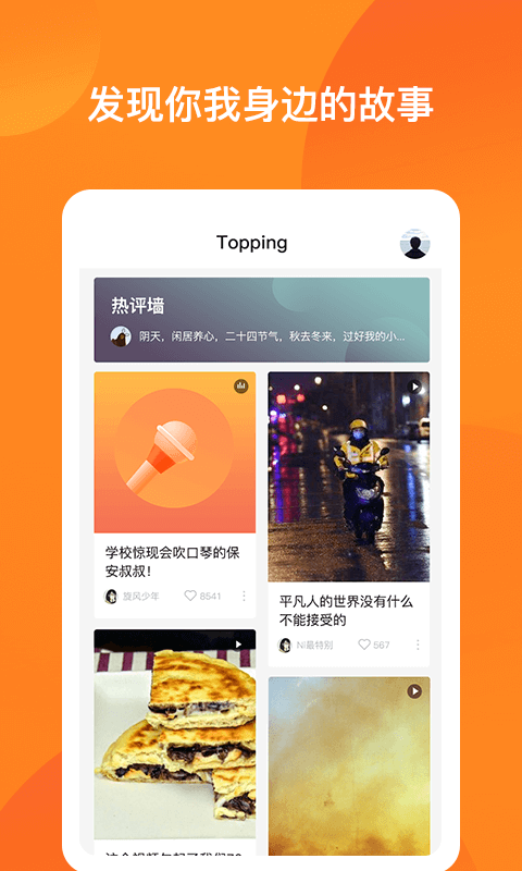 Topping是一款专注于语音和短视频分享的社群APP,致力于为用户提供一个自由表达、轻松互动的平台。在这里,你可以用声音传递情感,用视频记录生活,还能与来自五湖四海的朋友们一起分享有趣的故事和观点。无论是日常生活中的小确幸,还是脑洞大开的创意内容,Topping都能为你提供展示的舞台。此外,平台还汇聚了众多才华横溢的KOL,他们的精彩内容将为你带来无限灵感和欢乐。