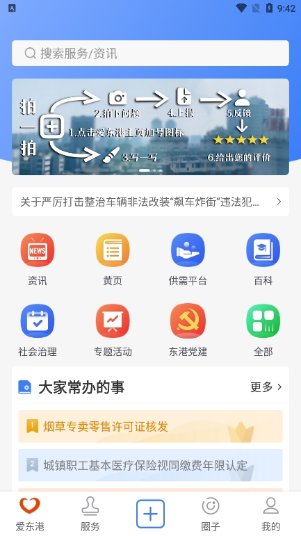 首先,用户需要在本站下载并安装爱东港app客户端,安装完成后打开应用程序,仔细阅读并同意用户服务协议。完成注册登录后,即可进入功能丰富的首页界面,这里汇聚了各类实时资讯和便民服务入口。用户可以根据个人需求,快速查询和办理各类政务服务事项。平台还设有活跃的社区圈子板块,支持用户自由发帖交流,分享生活点滴,结识志同道合的新朋友,共同构建温暖的东港线上社区。