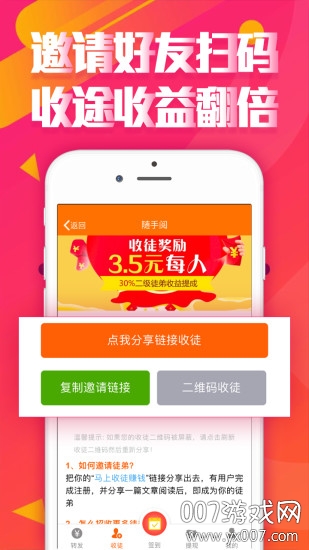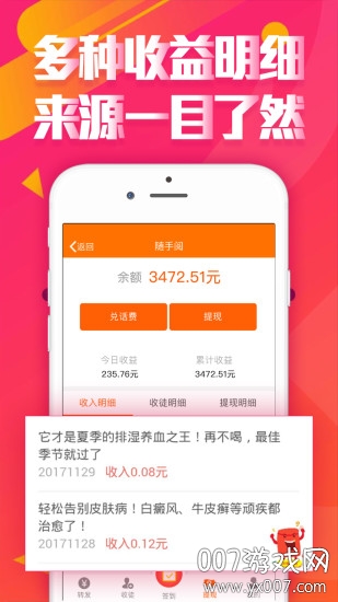 每日签到功能让用户获得连续登录奖励,积分系统支持任务积分兑换抽奖机会。幸运抽奖环节每天都有惊喜奖品等待用户领取。平台每天更新海量优质文章任务,涵盖各类热门话题。邀请好友加入可获得额外收徒奖励,每位好友的活跃度都能为您带来持续收益。文章浏览奖励机制鼓励用户将内容分享至社交平台,好友点击阅读次数越多,获得的奖励就越丰厚。