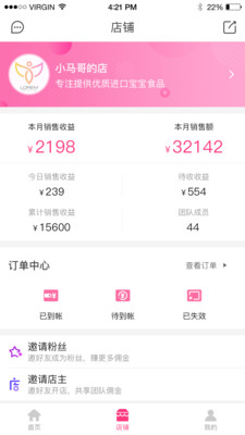 【订单收益】平台采用创新的社交电商模式,用户每完成一笔订单,作为店主的您都能获得相应收益。收益明细清晰可见,让您随时掌握经营状况。