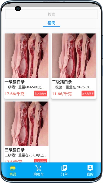 平台支持的货品主要包括猪肉、牛肉等经过严格检验检疫的肉类产品。通过收集各分销商(商铺)的销售数据,平台能够为公司制定科学合理的统一采购计划,同时规范出库、入库和质检流程,从而有效平衡销售、库存和采购之间的关系,避免资源浪费或供应不足的情况发生。