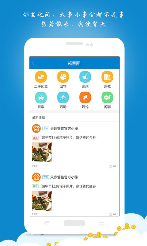 天鼎管佳app的亮点功能让社区服务更加智能化、人性化。在线报修系统让您随时提交维修需求,实时跟踪处理进度,还能对服务结果进行评价。小区公告栏确保重要信息及时送达,让您随时掌握物业动态。邻里圈功能则为您提供了一个与邻居交流互动的平台,无论是闲聊、二手交易还是组织活动,都能在这里找到志同道合的伙伴。