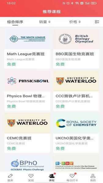 包括AMC、COMC、BPhO、CEMC、CCC等多项热门竞赛的报名和备考服务。平台提供详细的竞赛介绍、报名指南和备考建议,帮助学生选择最适合自己的竞赛项目。同时针对每项竞赛的特点,提供定制化的学习计划和模拟测试。