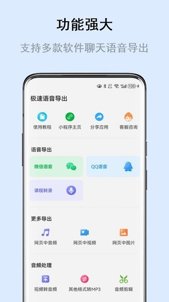 极速语音导出不仅是一款工具类应用,更是记录生活美好瞬间的得力助手。它采用与微信相似的操作逻辑,界面设计直观友好,即使是初次使用的用户也能快速掌握导出流程。应用支持将微信、QQ、Tim等主流社交软件的聊天语音轻松转换为MP3格式,转换过程简单高效。