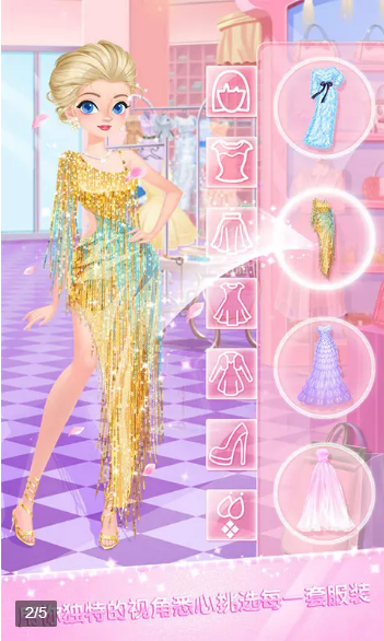 下一步,你可以为芭比公主挑选合适的发型和饰品,用漂亮的礼服来打芭比公主,打造整体造型。