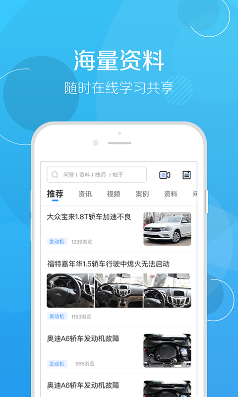 平台会智能的进行推荐,让用户了解更多的汽车知识;基于用户浏览习惯和专业技能,系统会精准推送相关技术文章和维修案例,帮助技师拓展知识面。