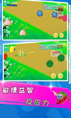 游戏采用直观的触控操作方式,小朋友只需滑动手指就能将各种可爱的水果切成两半,操作简单易上手。游戏中的炸弹会扣分,而闹钟则可以增加游戏时间,这些设计元素让游戏更具策略性。精美的游戏画面和流畅的动画效果,为孩子们带来极致的视觉享受。随着关卡推进,难度会逐步提升,有效训练孩子的反应速度和手眼协调能力。每关都有特定的目标分数需要完成,累计分数可以解锁更多有趣的内容。
