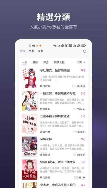 海量小说资源库持续扩充,涵盖各大热门分类,满足不同读者的多样化需求,让每位用户都能找到心仪的作品。