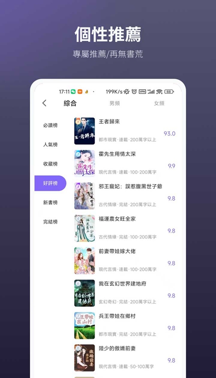 支持在线阅读和下载阅读两种模式,连载作品实时更新提醒,支持多任务后台切换,阅读过程不会被打断。
