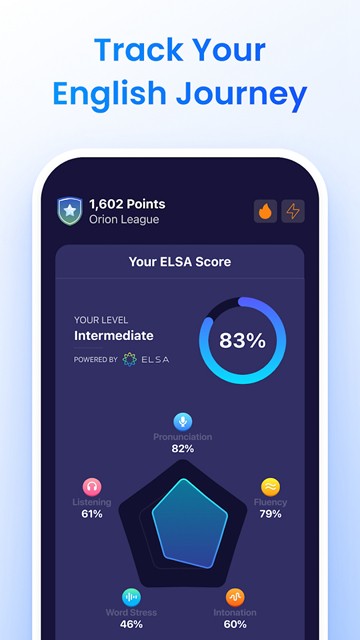 特别值得一提的是ELSASpeak的发音训练系统,它采用先进的语音分析技术,为用户提供精准的发音指导。通过跟踪工具,您可以清晰看到自己在发音、对话、语调、节奏等各方面的进步情况。软件还提供定制化的训练计划,针对您的薄弱环节进行强化练习。这些专业功能使ELSASpeak成为市面上最有效的英语口语提升工具之一。