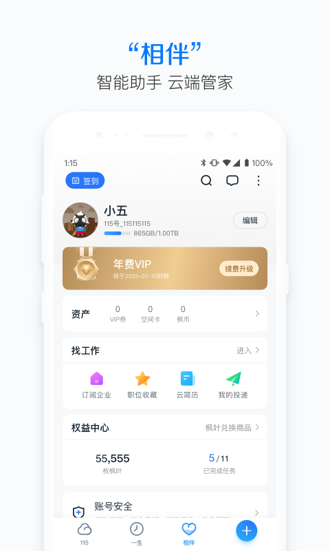 作为一款全方位的数字生活管理工具,115个人app始终坚持以用户需求为核心,持续优化产品体验。其强大的云存储服务采用多重加密技术,确保数据安全无忧;智能化的记录功能让生活管理更加轻松;丰富的社交和求职模块则为用户提供了更多可能性。