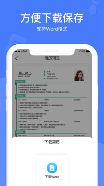 轻松下载,精美简历:支持高清导出,确保简历在任何设备上都能完美展示;