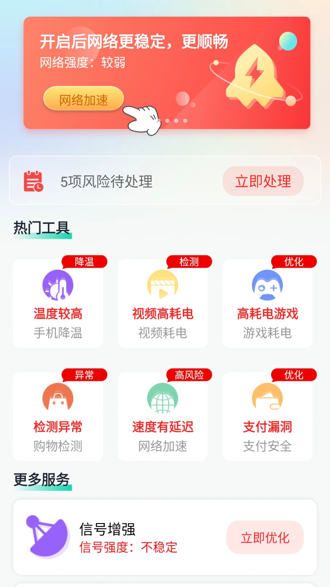 下载安装最新版本后,首次启动时需要授予必要的权限。进入主界面后,可以看到清晰的功能分区,包括网络状态监测、设备管理等实用工具。在右上角的"网络"选项中,用户可以实时查看当前网络连接质量,包括信号强度和稳定性等关键指标。点击"网络加速"功能,系统会自动诊断并优化网络连接,解决常见的卡顿、延迟等问题,让上网体验更加流畅。