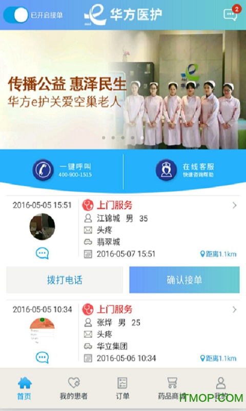 找特需服务(生活服务、特需护理等),满足用户个性化的医疗健康需求。自我居家检测,智能提醒检测结果5医生开出延伸医嘱给病人,送药到家,让医疗服务更加贴心便捷。可以直接在线找医生咨询,获得专业及时的医疗建议。找护士上门服务(包括附近的医护站、护理院),为用户提供专业的居家护理解决方案。
