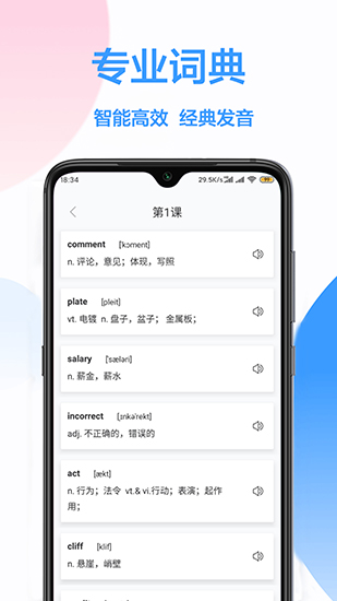 配备发音练习功能,通过标准发音示范和录音对比,帮助用户改善英语发音。