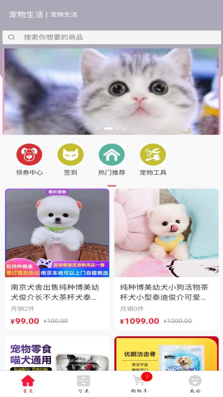 平台汇集了国内外上千个知名宠物品牌,商品涵盖宠物食品、清洁用品、服饰配件等全品类。所有商品均经过严格筛选,确保品质可靠。特别推出"急速达"服务,同城订单最快2小时送达,解决用户的紧急需求。平台定期举办品牌促销活动,进口狗粮、猫粮等商品价格优惠力度大,让用户享受超高性价比。此外,还设有"萌宠好物"专区,精选设计独特的宠物用品,满足追求时尚的宠物主人需求。