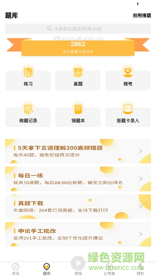 润雨必胜是一款专为公务员考试备考打造的全方位在线学习平台,集真题训练、视频课程、知识点讲解、模拟考试、考前押题、学员互动和经验分享等多种功能于一体。无论您是初次备考还是需要查漏补缺,润雨必胜都能为您提供专业、高效的学习支持。平台汇聚了海量优质资源,包括历年真题解析、名师直播课程、申论热点分析等,帮助您系统掌握考试要点,提升答题技巧。现在就来绿色资源网下载体验,开启您的公考成功之路!