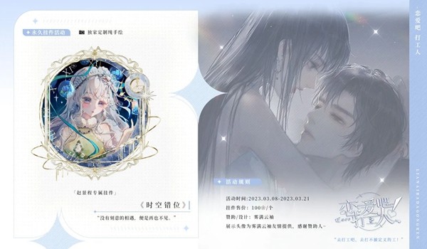 游戏由荔柒柠负责剧本创作,乱世担任制作人,UI设计和表白卡由定风波-仓鼠壳无言书生-阿祝独家定制。游戏音乐《缺》由镜予歌/亡海Aries创作,主角团立绘汇集了众多优秀画师的作品。游戏还得到了众多赞助商的支持,包括时巻弥醉、之婓岸离、雾满云袖等。由于参与人员众多,如有遗漏请及时联系制作团队。