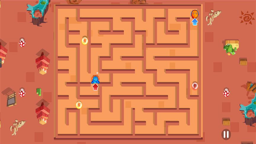 迷宫的米诺斯是一款充满挑战与趣味的合作解谜游戏,其核心玩法灵感来源于经典的森林冰火人。玩家将置身于错综复杂的迷宫世界中,通过默契配合操控冰与火两位角色,利用他们独特的属性能力突破重重障碍。游戏精心设计了数百个难度递进的关卡,从入门级的简单迷宫到令人绞尽脑汁的复杂机关阵,为玩家带来持续升级的挑战体验。每个关卡都考验着玩家的空间思维能力和团队协作精神,只有真正理解角色特性并完美配合的玩家才能顺利通关。