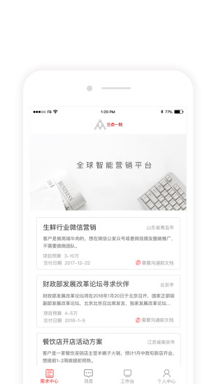 三点一刻手机版是一款专为企业营销需求打造的一站式智能服务平台,无论您是初创企业还是营销专业人士,都能在这里找到适合的解决方案。对于初创公司而言,营销往往是最具挑战性的环节之一,三点一刻手机版提供了从品牌建设到市场推广的全方位支持,帮助企业在竞争激烈的市场中快速站稳脚跟。而对于营销人才来说,平台不仅提供了丰富的项目机会,还搭建了展示专业能力的舞台,让您的才华得到充分发挥。