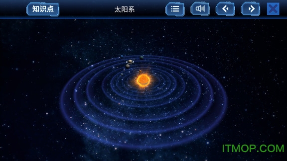 太阳系有八大行星,太阳是太阳系中惟一的恒星,月球是地球惟一的卫星。本应用基于现有的恒星、行星和卫星的科普知识,运用虚拟仿真技术将模型三维模块化,以交互的方式寓教于乐;用户可以自由调整时间参数,观察行星运动轨迹的变化规律。