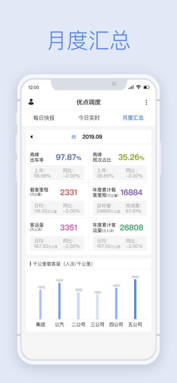每月总结,这里是按月进行统计总结,让您更好的了解功能和特性,以便您更好的使用。每月初系统会生成上月运营分析报告,包含准点率、载客量、油耗等核心指标的趋势分析,帮助管理者掌握整体运营状况。