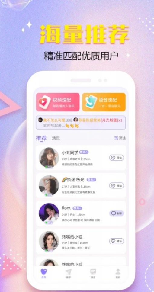 精准的匹配算法:基于大数据分析的高科技匹配系统,能快速找到与你三观相合、兴趣相近的伴侣;