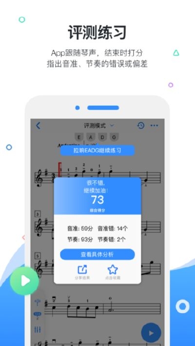 付费功能提供更专业的分析工具:评测结果会详细分解到每个音符的偏差值;伴奏音频支持多种风格选择;乐谱可分段练习;还能录制并分享练习音频给老师点评。