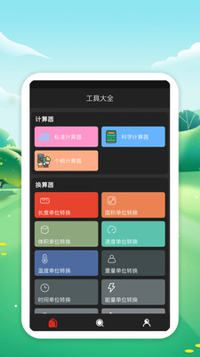 打开app可以看到首页的"工具大全",这里按照使用场景将各类工具进行了科学分类,包括办公工具、生活助手、系统工具等八大类别。每个工具图标都经过精心设计,色彩鲜明易于辨认,用户可以根据自己的需求快速找到所需功能。