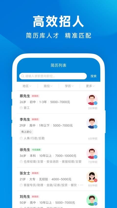 在线招工:鲸才招聘实时查看最新的求职者信息,了解详细的工作经验和背景,轻松预约面试。企业用户可以通过智能筛选功能快速找到符合要求的候选人,提高招聘效率。