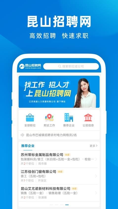 昆山招聘网是昆山地区正规的人才招聘网站,提供昆山人才网招聘信息,打造具有影响力的网上昆山人才市场,找好工作上昆山招聘网,招聘求职快人一步。作为本地化招聘平台,对昆山就业市场有着深刻理解,能够提供最符合当地需求的岗位资源。
