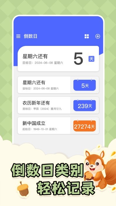 自定分类:如工作、生活、节日、纪念日等。每个分类下可添加无限个倒计时项目,满足各种场景需求。
