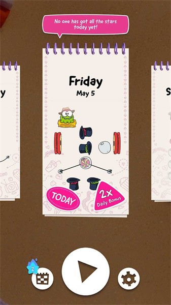 玩家需要通过割断绳子喂宠物,顺利通过关卡。解决逻辑难题需要大脑和智慧。创新的物理引擎让每次切割都产生真实反馈。参与全球挑战,在日常谜题中与其他玩家竞争,每天解锁新关卡,加入本次全球挑战。每周举办的锦标赛让高手们一决高下。可爱的怪物OmNom带来新的挑战和对糖.果的渴望,每个新地点都可以体验不同的特殊服装和氛围。角色还会根据季节变换造型。你可以与好友分享游戏中的成功,互相炫耀你的智慧和成就,并通过社交媒体分享你的成就,引发热议。专属成就系统记录每个里程碑。利用空闲时间解决谜题,让游戏保持新鲜感和挑战性。游戏难度适中,容易过关但难以脱颖而出。隐藏彩蛋等待细心玩家发掘。