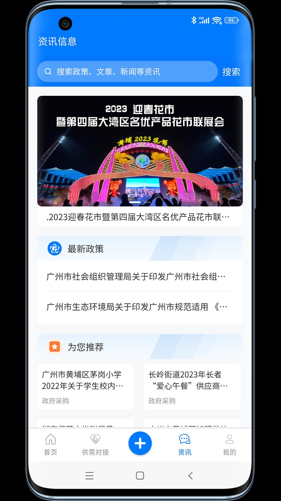 点击底部"资讯"栏目,可浏览最新政策、平台动态与推荐内容,获取第一手政策资讯。资讯按行业、类型、重要性等多维度分类,支持关键词订阅和智能推送,重要政策配有专业解读和申报指南,帮助企业把握政策机遇。