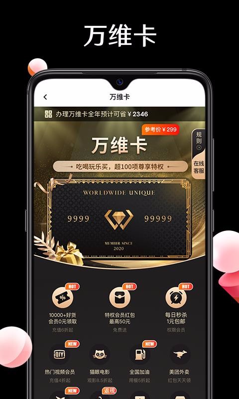 万维卡是一款专注于为用户提供全方位优惠卡管理与消费服务的智能生活平台。作为一款集优惠特权与网上购物于一体的服务软件,它不仅能让用户轻松申请专属优惠卡,还能在特权中心探索覆盖生活方方面面的超值福利。从淘宝、天猫等主流电商平台的购物折扣,到美团外卖的美食优惠,再到腾讯视频的会员特权,万维卡真正实现了"一卡在手,优惠全有"的便捷体验。