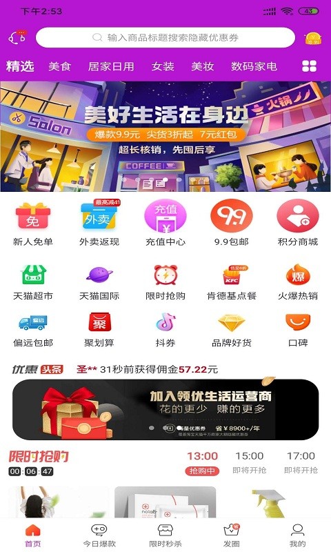 作为网络购物首选的省钱工具,《领优生活》每天提供海量折扣券、优惠券,让你享受不间断的购物福利。这款软件特别适合学生、上班族、宝妈以及自由职业者使用,只需动动手指就能轻松省钱,甚至还能通过分享优惠获得额外收益。平台汇集了来自淘宝、京东、拼多多等主流电商的优质优惠券,让你购物时再也不花冤枉钱,真正做到省钱又贴心。更值得一提的是,平台还提供独家隐藏优惠券,这些优惠券在普通电商页面是无法看到的,只有通过《领优生活》才能获取。