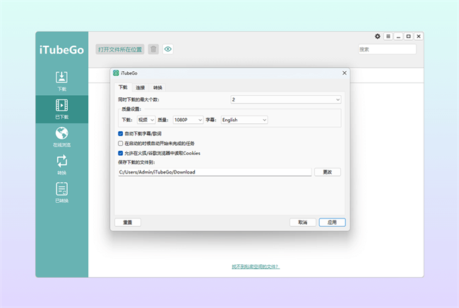 itubego电脑破解版提供了丰富的功能,满足用户的各种需求。首先,它支持下载各种视频格式,包括4K、8K、1080P、720P等多种高清和超高清视频格式,确保您获得最佳画质。其次,它还具备强大的格式转换功能,可以将下载的视频和音乐转换为不同的音频和视频格式,如MP4、MP3、AVI、MOV等,方便您在不同设备上播放。此外,itubego支持批量下载视频和音乐,大大节省了用户的时间。软件还内置了视频编辑工具,允许用户对视频进行裁剪、调整效果等操作,让您的视频更加个性化。为了方便用户使用,itubego还提供了浏览器插件,让您可以直接在浏览器上下载在线视频,操作更加便捷。