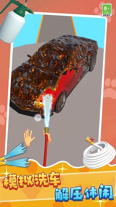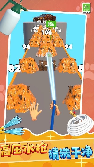 这是一款纯粹的休闲解压游戏,没有任何复杂的关卡限制,玩家可以随心所欲地享受清洁的乐趣。清新简约的卡通画风搭配明快的色彩搭配,营造出轻松愉悦的游戏氛围。玩家可以使用高压清洗机来深度清洁顽固污渍,通过完成任务获得金币来升级装备。游戏特别设计了多种不同的污渍类型,从普通灰尘到顽固油渍,需要玩家采用不同的清洁策略。点击屏幕控制水管方向,看着污渍被水流冲走的瞬间特别解压。