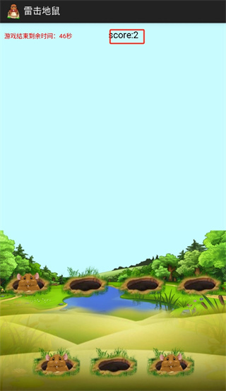 下载安装好后点击开始游戏即可进入游戏,进入游戏后看到地鼠从洞口钻出来立即点击即可打晕。随着游戏进行,地鼠出现的速度会逐渐加快,考验玩家的反应速度和精准度,带来更多挑战性。