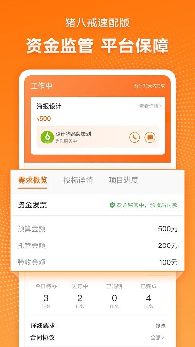 【担保交易】平台建立了完善的安全保障体系,所有服务商都经过严格的实名认证。交易过程中,资金由平台全程托管,确保资金安全。如遇纠纷,平台会第一时间介入调解。同时提供电子合同、发票开具等配套服务,让每一笔交易都规范透明。