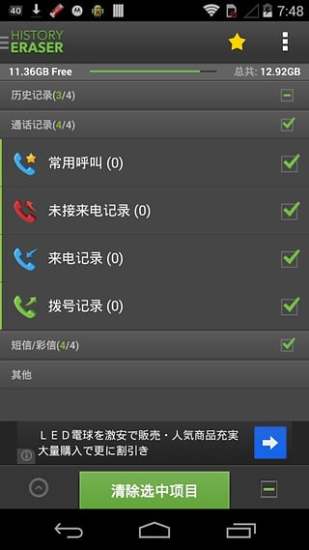 彻底删除通话记录和常用联系人记录