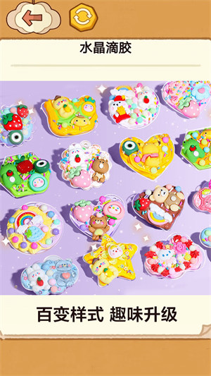 游戏提供了多种胶水模具选择,从可爱的小爪子到萌萌的小兔子,每一款模具都能帮助你创造出独特的形状和图案,让你的水晶作品更加丰富多彩。你可以自由切换不同的胶水颜色,根据个人喜好搭配出最满意的效果,让每一件作品都充满个性。制胶操作简单易上手,只需轻触屏幕即可将胶水注入模具,流畅自然的制作过程让你轻松享受手工乐趣。完成作品后,你可以将其保存并收藏,建立专属的水晶作品库,记录每一件作品的创作故事,让它们成为你珍贵的回忆。