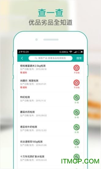 扫条码,查一查。优品劣品全知道,只需轻轻一扫,商品所有检测信息一目了然,包括历史检测记录和同类产品对比。