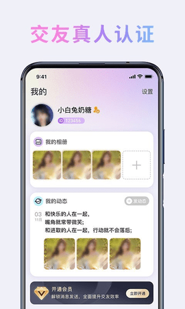 日常生活可以充分了解,通过动态时间线展示真实生活状态,更方便认识更多与你有共同兴趣的朋友。系统会分析用户兴趣偏好进行智能推荐。有更多的真人认证服务供您分享,包括学历认证、职业认证等,拒绝虚假社交,营造最真实的交友氛围。平台还会定期清理不活跃账号。可直接开启附近交友模式,精准定位3公里范围内的用户,让您找到更多身边的朋友。支持线下活动报名功能。